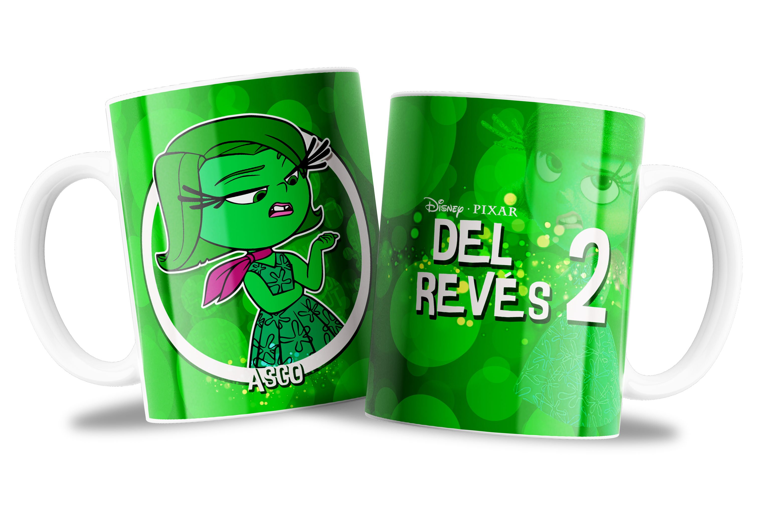 Tazas personalizadas inspiradas en Del Revés 2, con diseños únicos de las emociones de la película.