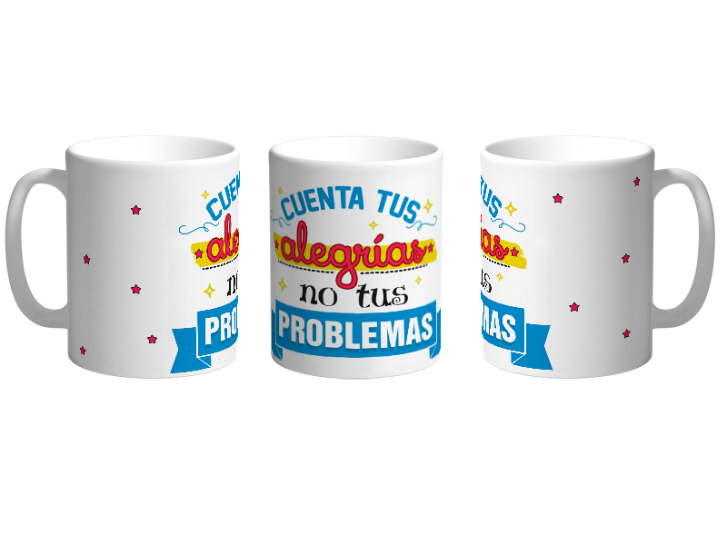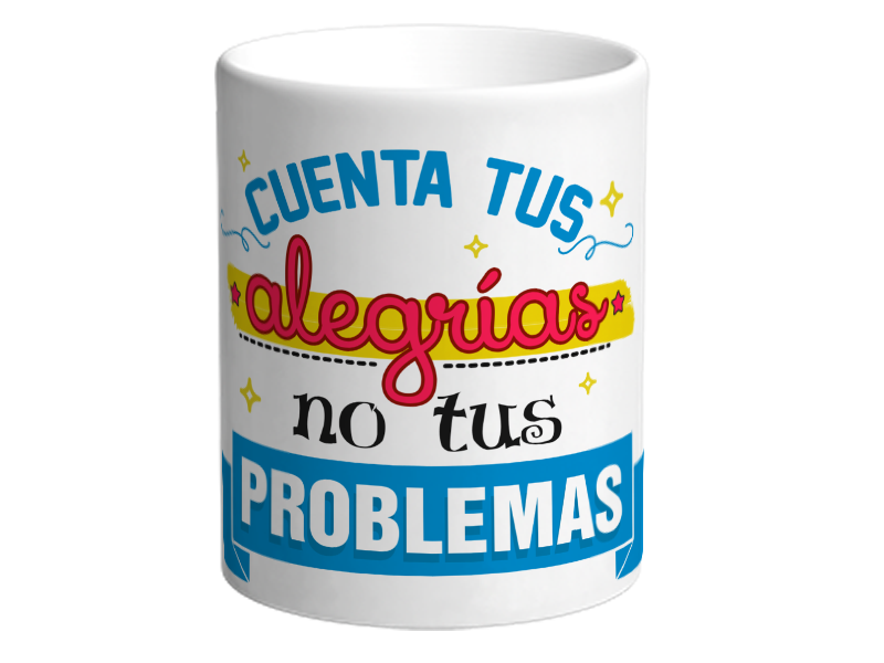 La taza “Cuenta tus alegrías, no tus problemas” es un recordatorio perfecto para enfocarte en lo positivo y disfrutar de cada instante. Con un diseño alegre y colorido, esta taza transmite optimismo y energía en cada sorbo. Ideal para tus momentos de café, té o cualquier bebida favorita, te acompañará en la oficina, en casa o como un detalle inspirador en tu día a día. También es un regalo motivador y original para amigos, familiares o compañeros que valoren la importancia de ver el lado bueno de la vida. Con esta taza, cada mañana comienza con una dosis extra de gratitud y alegría.