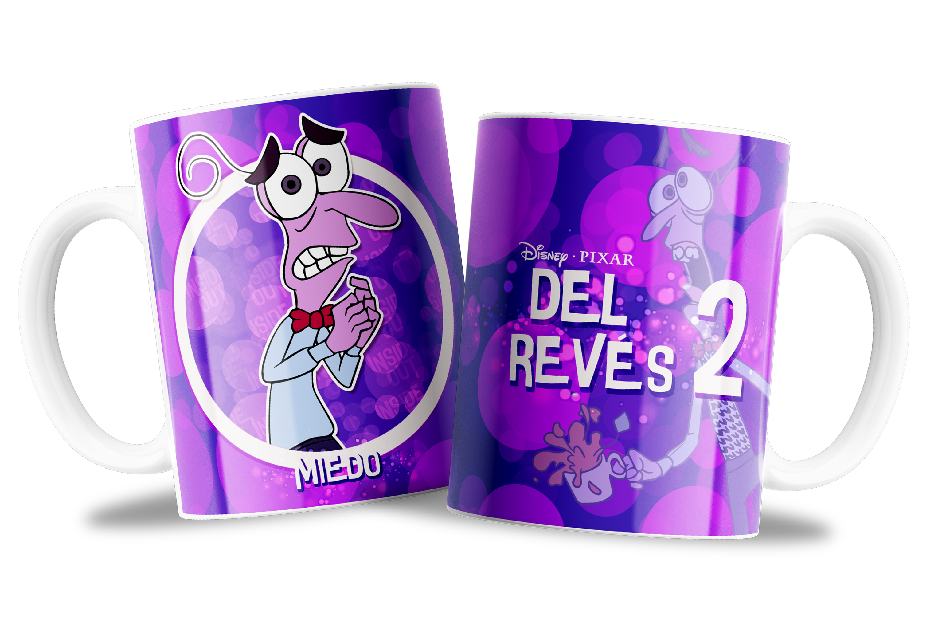 Tazas personalizadas inspiradas en Del Revés 2, con diseños únicos de las emociones de la película.