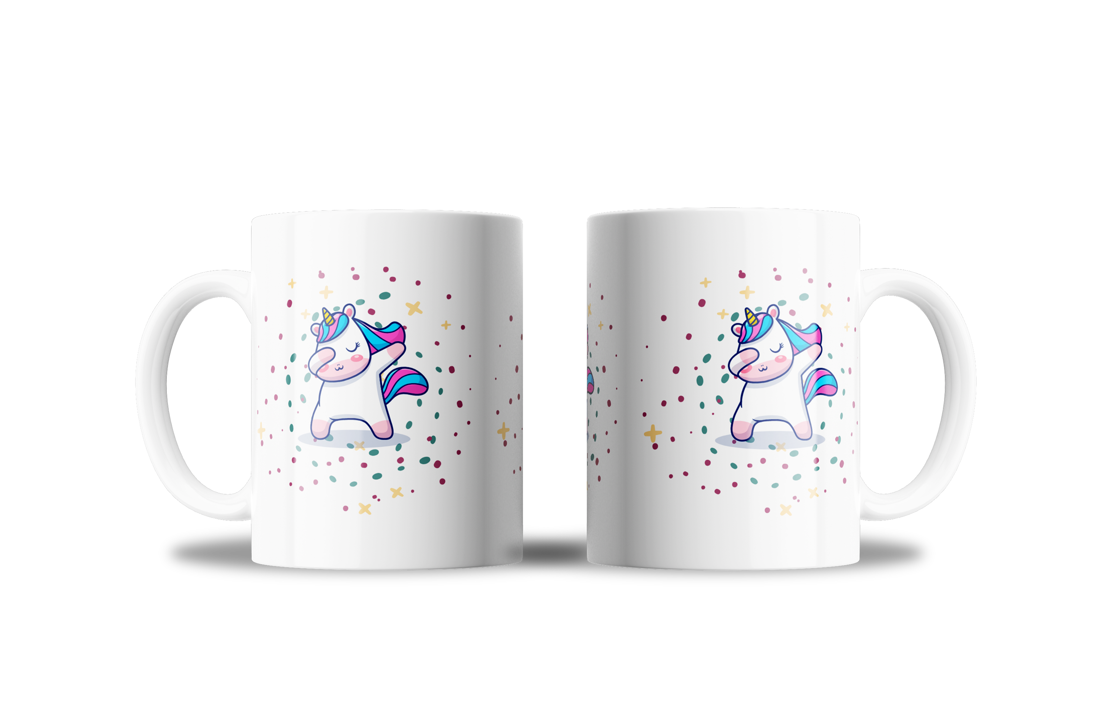 Dale un toque divertido y mágico a cada desayuno con esta taza infantil de unicornio kawaii dab, un diseño alegre que encantará a los más pequeños. El unicornio aparece en una pose divertida y moderna, rodeado de confeti y estrellitas de colores, creando un ambiente lleno de fantasía y diversión. Fabricada en cerámica de alta calidad, esta taza es resistente y perfecta para el uso diario. La técnica de sublimación asegura que los colores sean brillantes y duraderos, manteniendo el diseño intacto incluso tras muchos lavados. Un regalo original para niñas y niños que adoran los unicornios y los diseños divertidos. Con esta taza, cada sorbo será una fiesta llena de color y magia.